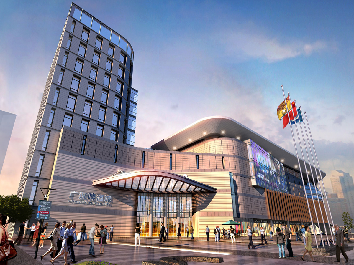 此工程位于四川广汉,该工程设计的最大特点是灵活的运用曲线形体创造出了丰富多变的商业空间。简洁大方的新德式建筑突出了啤酒风情的特点,同时最大化的采用沿街店面,创造出该地块极大的商业价值,为建设单位创造了最大化的经济效益。